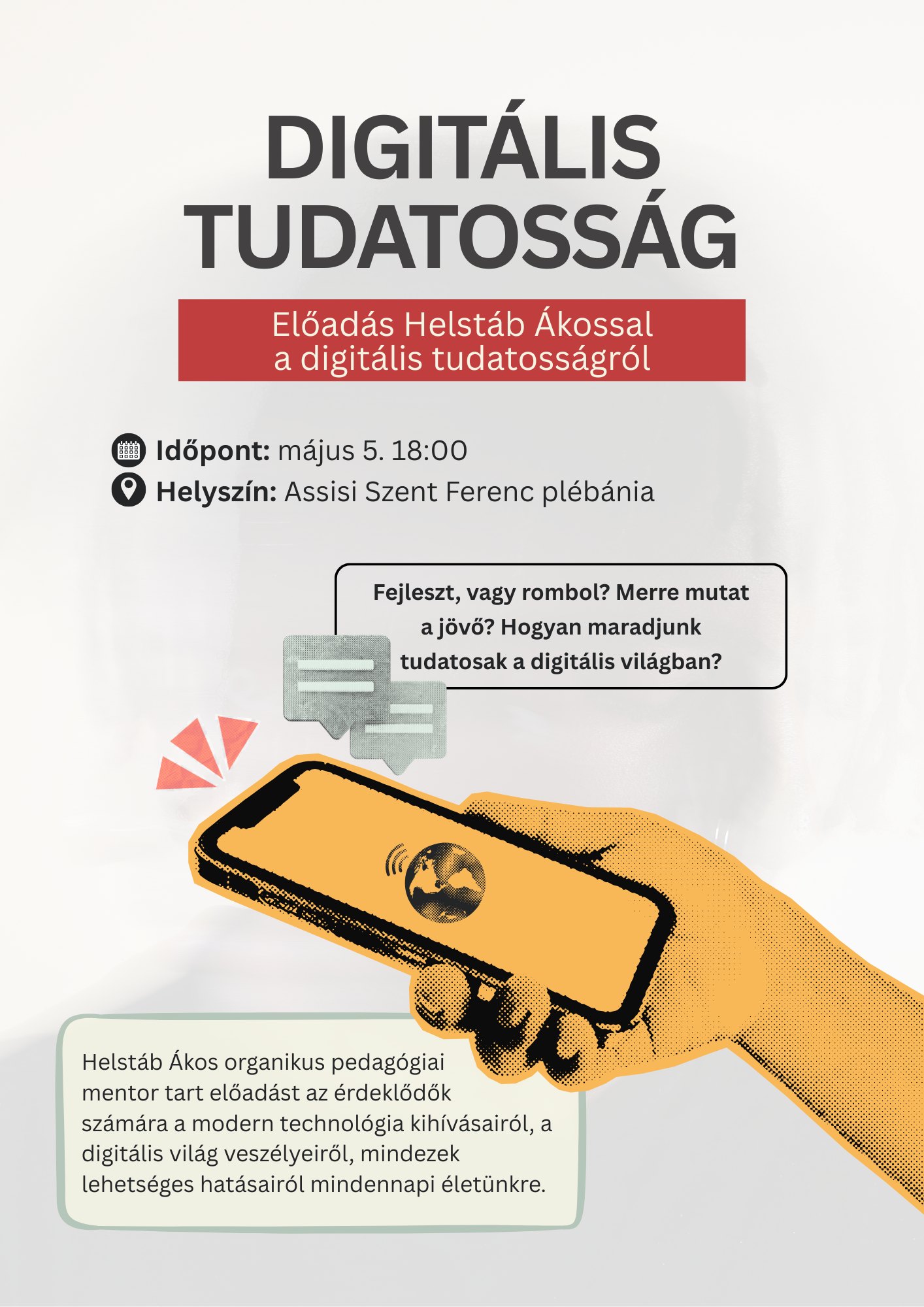 Ferencvárosi Főplébánia Bakáts tér 13., Budapest, HungaryFejleszt vagy rombol? Merre mutat a jövő? Hogyan maradjunk tudatosak a digitális világban? A 45 perces előadás ingyenes, de regisztrációt kérünk.